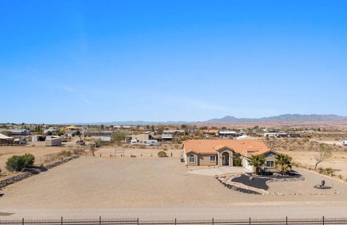 Embark on a desert adventure at this spacious 4-bed, 2-bath home, sleeping up to 10. Located in a country town (ten minutes from Mesquite) surrounded by mountains, you`ll have easy access to UTV trails, a fenced area for horses, an RV hookup, and ample parking for recreational trailers. Golfer too can relax in cozy rooms, enjoy a fully equipped kitchen, and take in stunning mountain and desert views from the property. Perfect for families or groups seeking outdoor fun and adventure. Book your stay today!