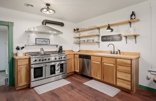 Unwind at this charming home with 4 cozy bedrooms including 2 king beds, 1 queen bed, and 4 bunk beds. Enjoy the convenience of 2 bathrooms equipped with showers and hair dryers. This enchanting property also offers amenities like a washing machine, heating, WiFi, and AC. With the spacious and welcoming kitchen, LARGE CENTER ISLAND for dining, and TONS of natural light, this well put together home is perfect for a large group. Zero entry front door and main shower.