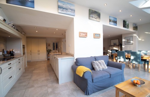 Upstairs, the master bedroom has a king-sized bed and en-suite with a rainfall shower. Three additional bedrooms and a family bathroom with both a bath and shower complete the upper floor.