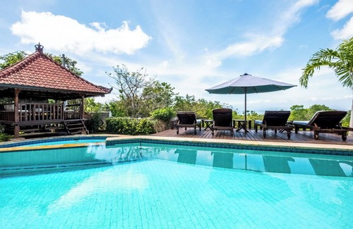 This vacation villa occupies a stunning location on Bali's "Bukit", the hill on the southern peninsula from where you enjoy sweeping views of Bali, Java, and the ocean.