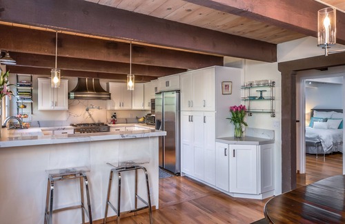 A renovated Tudor style home in Hatton Fields area. The home is very convenient to grocery stores that include Lucky, BevMo, Safeway, CVS Pharmacy. Very close to Barnyard shopping center and Crossroads shopping center. Also extremely convenient to Carmel by the Sea, Carmel Mission and Carmel beach. The home includes 4 bedrooms and 3.5 bathrooms and room for parking up to 4 cars. Back deck and fire pit and bbq all available. No pets, parties or events. Security camera on outside of house.