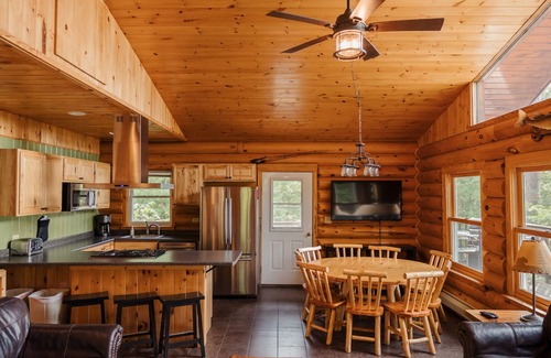 Situated at the heart of the resort on the northwest shoreline, Timber Jay is a cozy 4 bedroom log cabin with lakeside living space and an inviting wrap-around deck. This beachside Lake Vermilion cabin is popular during the heat of summer, and its 40' dock that fits four boats, excellent lake view and close proximity to the lakefront amenities make it a solid lodging choice all season long.