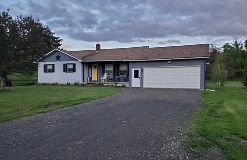 Stay comfortably in Canaan at this 4-bedroom house. This welcoming property offers a pleasant atmosphere for guests to relax and unwind. With 1 king bed, 1 queen bed, and 5 twin beds, there is plenty of space for everyone to enjoy a good night's sleep. The house features a fully equipped kitchen, two cozy living rooms, one with a queen sofa bed, and 3 bathrooms with amenities like a hair dryer and a jetted bathtub. Whether you're exploring the nearby attractions or simply enjoying the peaceful surroundings, you're sure to make fantastic memories with a stay at our place. Quiet neighborhood, dead end location, beautiful flat backyard for games or enjoy the firepit. ATV riders have a designated "gear room", so they can leave their muddy/dusty/dirty riding gear in the basement and not track it into the main house. At the end of a long day of riding, relax in the soaker tub and rejuvenate yourself for the next day.