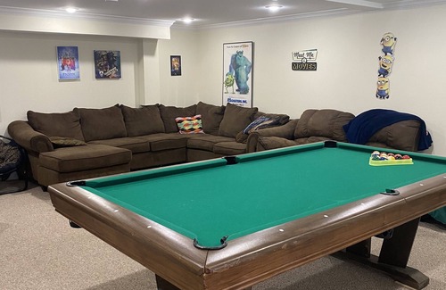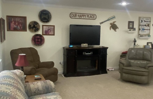 Bring the family or 2 families and enjoy a space where you can spread out both inside and outside. House is 2 story with 3 bedrooms that have a en suite bath and 1 bedroom with multiple beds that is perfect for the kids that has access to a bathroom with a shower! Inside there is a pool table, 2 large TVs, board games, fully equipped kitchen, and a dinner table big enough for the family! In the backyard you will find a fire pit, swings, trees for your hammock, and room to roam. And the best part is that you are only steps from the water’s edge!