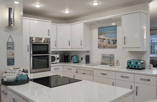 Bathroom: Bath With Shower Over, Toilet. Gas central heating, electricity, bed linen, towels and superfast Wi-Fi included. Initial logs for wood burner included. Cot and highchair. Doggy extras.. Enclosed garden with patio, garden furniture and BBQ. Private parking for 3 cars. No smoking. . Blue Caps is a beautiful detached property nestled in a peaceful cul-de-sac within the heart of the welcoming coastal village of Beadnell. Furnished and equipped to a very good standard this deceptively spacious cottage oozes the epitome of style. The large open plan living space centres upon a welcoming woodburner ensuring Blue Caps is a cosy choice regardless of the season. French doors lead to a fully enclosed south-facing patio area; an idyllic spot to dine alfresco. The contemporary dining/kitchen areas are very well equipped. With four spacious double bedrooms and four bath/shower rooms too, Blue Caps is a particularly suitable choice for extended parties. Two of the bedrooms (one king and one twin) are located at one ‘wing’ of the property leading from the living room, whereas the other two bedrooms (one king and one twin) are at the other, leading from the dining area – making this unique layout ideal for the gathering of families and friends alike. Beadnell is a popular holiday destination and offers local facilities including family and pet friendly pubs serving good food all within a gentle stroll from Blue Caps. A small sandy bay speckled with rocky outcrops is close by and leads to a long sandy beach that stretches to Seahouses, 2 miles north. The wide expanse of golden sandy beach Beadnell Bay is renowned for is a mere 10-minutes walk: a popular destination for water-sports enthusiasts, including sailing, sea kayaking, wind surfing and scuba diving. Beadnell Bay can truly be described as the jewel in Northumberland’s seaside crown; idyllic for a romantic barefoot stroll in the sand to listen to the waves lap against the shoreline and inhale the invigorating sea air. Two miles up the coastline is the traditional fishing port of Seahouses, where boat trips to the nearby Farne Islands – famous for its bird sanctuaries and seal colony – depart regularly from its harbour. Here there are several charming tea rooms, quaint pubs and shops with horse-riding; fishing and golf on the links close by being only a sample of the many amenities available in this popular location. A further 3 miles up the coastline is the picturesque village of Bamburgh, which lies snuggled in the shadow of its majestic fortress and commands the power and presence of the seasoned television set it regularly becomes. Holy Island – the birthplace of Christianity and site of Lindisfarne Castle – can be seen from the unspoilt golden, sandy beach. Just a few miles inland is the bustling market town of Alnwick, with its own dramatic castle (and film location for Harry Potter’s Hogwarts Academy!). Visitors will enjoy a trip to Alnwick Garden – a spectacular interpretation of a formal garden including the Grand Cascade waterfall and restaurant within the largest tree house in Europe! Beach 400 yards. Shop 300 yards, pubs and restaurants 400 yards.