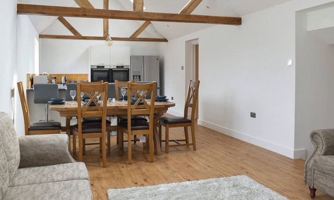 Split over two floors, there are four tastefully furnished bedrooms, providing every comfort for a restful night in the countryside. The master en-suite with a high vaulted beamed ceiling, and the second double bedroom lead off the living area. Both rooms have patio doors overlooking the garden and greenery beyond, whilst the third bedroom and modern family bathroom can be found off the entrance hall. Upstairs, in the eaves, a second living room snug awaits, with a double sofa bed and games console, the perfect retreat for children or teenagers. This area leads through to the fourth bedroom which enjoys picturesque, far-reaching views over rolling countryside. Outside, there is a lawned garden with patio area and barbecue, the ideal spot for al fresco dining or relaxing with a cool drink after a countryside stroll.