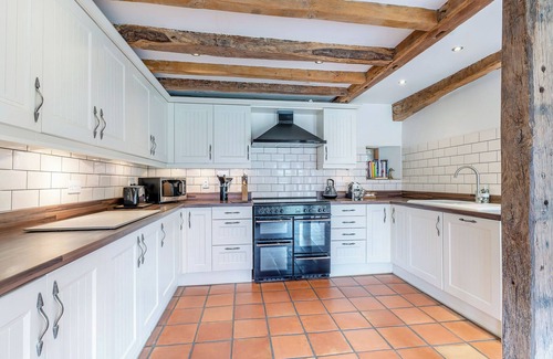 The lounge is cosy with a wood-burning stove and Smart TV, while a games room offers extra space with two single sofa beds, an Xbox, table tennis, and football table. Inside, the open-plan kitchen and dining area is well-equipped with a range cooker, gas hob, microwave, dishwasher, fridge freezer, washing machine, tumble dryer, and coffee pod machine. Patio doors lead out to a fully enclosed garden with lawn and decked area, ideal for outdoor dining and soaking in the countryside air. A ground-floor toilet adds extra convenience. Upstairs, you’ll find a king-size room with Jack and Jill bathroom (with bath and shower over), two double bedrooms, a bunk room, and a second bathroom with shower cubicle.