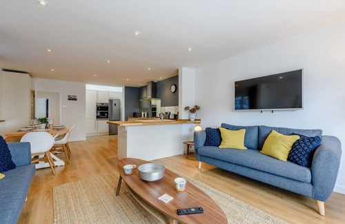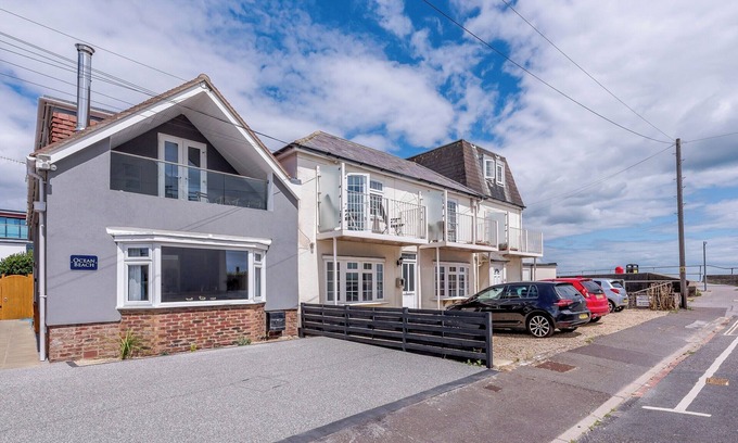 Shower Room: Cubicle Shower, Heated Towel Rail, Toilet. Gas central heating, electricity and Wi-Fi included. Travel cot and highchair. Initial fuel for wood burner included. Enclosed garden and patio with garden furniture. Private parking for 2 cars. No smoking.. Situated near the popular coastal resort of Bognor Regis with easy access to a sandy beach, this stylish and contemporary beach house has been finished to the highest standard offering the perfect place for blissful escapes, coastal adventures and memorable breaks with friends and family. Conveniently located in the seaside village of Felpham, the property is located at the end of an idyllic cul-de-sac that leads onto the promenade with easy access to the sandy beach. The name Ocean Beach perfectly represents its amazing coastal position boasting uninterrupted views of the glistening coast from the first floor balcony.