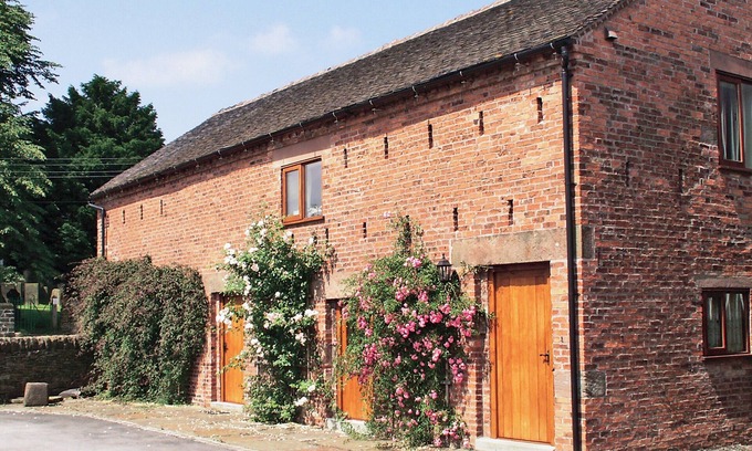 Shower Room: Walk-In Shower, Toilet. Gas central heating and electricity included (24th October-23rd April, at cost, by meter reading). Bed linen, towels and Wi-Fi included. 2 travel cots and 2 highchairs. Garden with patio and garden furniture. Private parking. No smoking.. This beautifully converted, comfortably furnished detached barn lies in a peaceful, neat courtyard with lovely views. It is situated at the edge of a village and adjacent to the owner’s dairy farm, midway between the Potteries and the Peak District, just 5 miles from Alton Towers and Splash Landings swimming pool and convenient for Drayton Manor. Within 8 miles you can take a canal trip, ride on a steam train or hire bikes and cycle the Manifold Trail. Two pubs, both within 1 mile of each other, one in Froghall and one in Kingsley Holt.