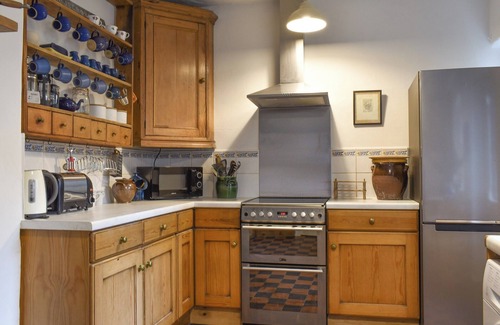 Bedroom 4: Double (4ft 6in) Bed. Gas central heating, electricity, bed linen, towels and Wi-Fi included. Travel cot and highchair. Stairgate. Doggy extras.. Enclosed rear garden with sitting-out area. Outside shower (cold). Private parking for 1 car, further on road parking nearby. No smoking. Please note: There is a step in the garden.. It is evident as soon as you enter Hillside House that it is filled with character and charm. There is room to hang coats and kick off your shoes in the generous hallway. A cosy living room with a bay window, fireplace, comfy seating for eight and a TV with Freesat box is located at the front of the property, an ideal spot to wind down after a day of exploring. The dining room to the rear of the property features antique furniture including a grandfather clock and sideboard, a dining table for eight and an antique fireplace. This makes the room the ideal setting for family gatherings. From here there is direct access to the Lakeland kitchen, which is a mixture of country style and modern conveniences.