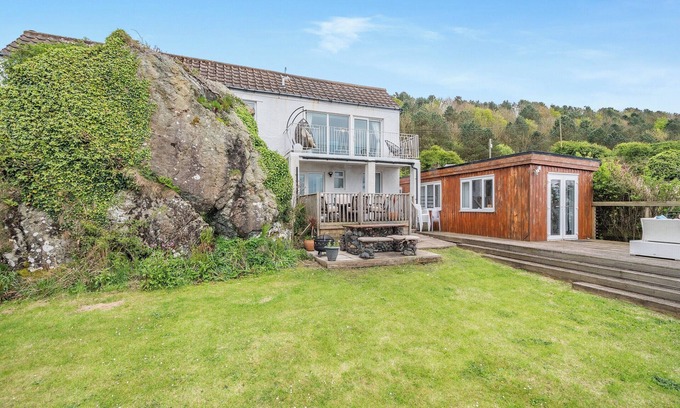 Bedroom 4: Double (4ft 6in) Bed Ensuite: Cubicle Shower, Toilet. Oil central heating, electricity, bed linen, towels and Wi-Fi included. Initial fuel for wood burner included. Travel cot and highchair available on request. Welcome pack. . Enclosed back garden with sitting out area, garden furniture and fire pit. Balcony. Sauna (private). Private parking for 2 cars. No smoking. Please note: This property has direct access to the sea.. Clach Mhor is located in Lendalfoot, on the west coast of Scotland, and only a 10-minute drive away from the coastal town of Girvan. You would be hard pushed to find a more stunning coastal location with the house sitting right on the rocks with the sea lapping below and with the most stunning views over the sea to Ailsa Craig and Arran. The sunsets are amazing in this beautiful corner of Scotland.