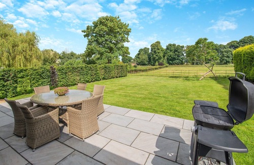 This luxurious holiday home in Myton-on-Swale boasts stunning countryside views, a spacious kitchen-diner, four elegant bedrooms and an inviting patio perfect for alfresco dining.. 2 steps to entrance.