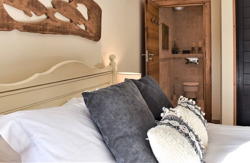 Bedroom 2: With king size bed, 24" Freeview TV with Netflix and Amazon Prime, DVD player, Amazon Echo with Spotify and audiobooks library, USB sockets and en-suite with spa bath, shower cubicle, toilet and heated towel rail.