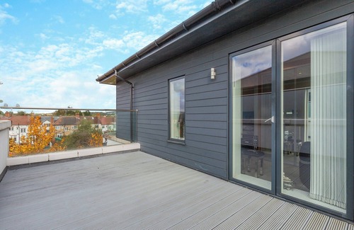 Bedroom 4: Kingsize (5ft) Bed, Smart TV Ensuite: Bath, Cubicle Shower, Heated Towel Rail, Toilet. Gas central heating, electricity, bed linen, towels and Wi-Fi included. Welcome pack. Enclosed back garden with patio, sitting-out area and garden furniture. Balcony with outdoor furniture. 2 small dogs welcome. Private parking for 1 car. No smoking. . This modern four bedroom, three bathroom property in Romford offers the perfect blend of comfort and contemporary living, ideal for families or groups seeking a relaxing getaway just outside London. Located in a quiet residential area, the property provides easy access to Romford’s bustling town centre, local parks, and transport links, making it an excellent base for exploring both the Essex countryside and the vibrant city life of London.