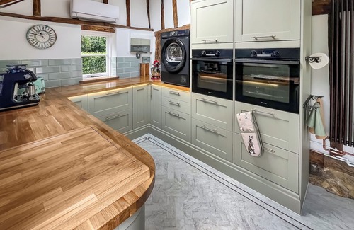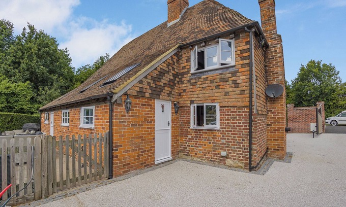 Separate Toilet.. Air conditioning, oil central heating, electricity, bed linen, towels and Wi-Fi included. Initial fuel for wood burner included. Travel cot and highchair. Welcome pack. Enclosed lawned garden with sitting out area, garden furniture, firepit and charcoal barbecue. Hot tub for 7 (private). Private parking for 2 cars. No smoking.. Bridge Cottage, a stunning 16th-century holiday let in the peaceful village of Sevington, Ashford, offers a truly unique and luxurious escape. This high-end four-bedroom cottage oozes character, with exposed beams, vaulted ceilings, and quirky architectural details that tell stories of its rich history. Lovingly restored to retain its period charm while incorporating modern comforts, the property is perfect for families or groups of up to eight guests seeking a memorable stay in the Kent countryside.