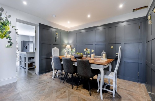 Bathroom: Bath, Toilet, Reduced Headroom.. Underfloor heating, bed linen, towels and Wi-Fi included. Travel cot available. Welcome pack. Back garden and Patio with garden furniture and barbecue (charcoal available at cost). Bike store. Electric car charging point (at cost). Private parking for 4 cars. No smoking.. Nestled in the tranquil countryside near Tring this charming four bedroom and four-bathroom farmhouse offers the perfect escape for families or groups seeking a peaceful yet luxurious retreat. With its idyllic setting, stunning views, and thoughtfully designed interiors, this property promises a memorable holiday experience for all guests.