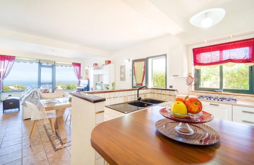 The colourful holiday home is located on a hill overlooking the Tyrrhenian Sea and is not far from the Nebrodi National Park. Spend a wonderful holiday in the appealing atmosphere, which promises relaxation and tranquillity. The living room with a beautiful view of the sea invites you to socialise, whether it's making music, cooking or playing cards.