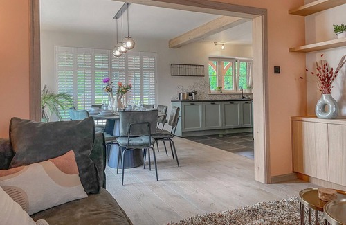 Look forward to a relaxing and varied holiday in this inviting house, which welcomes you in a great location not far from a lake. Make yourself at home in the tastefully furnished rooms decorated in warm colours. The inviting living area offers a beautiful view of the outdoors. Enjoy meals together here and stream your favourite series in the evening.
