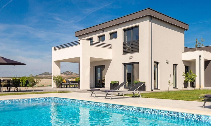 Villa Lacus is located in the beautiful settlement Vrana, which is 12 km away from the tourist centre Biograd. Thanks to the pleasant climate and fairy-tale landscape along Lake Vrana, the town of Vrana guarantees a fairy-tale holiday on the Adriatic. You can enjoy a fairy-tale view of Vrana Lake from this beautiful contemporary villa Lacus.