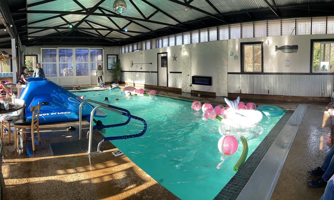 Family-friendly coastal retreat featuring a private indoor heated pool and separate entrance, it is shared with the other rentals if there booked. This spacious home offers 4 bedrooms and 2 lofts—perfect for large families or groups. It’s the main house on the property, with two additional rentals available upon request for exclusive bookings this is a shared property. The pool is shared with the other 2 rentals. You can inquire about the exclusive option if interested. The fully stocked kitchen is ready for hosting unforgettable meals and making lifelong memories with loved ones.