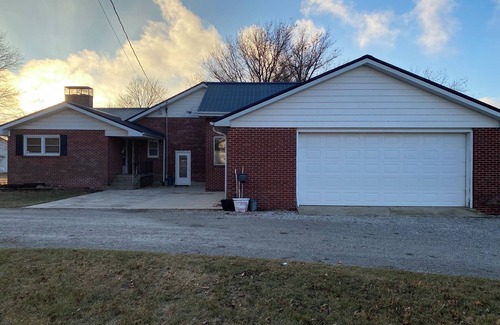 A unique getaway with a convenient location! Located just 35 minutes from Champaign/Urbana and Bloomington/Normal, this newly renovated farm house is a must stay. With 4 bedrooms, 2 bathrooms and a gathering space that can host up to 40 people it's the perfect space for all your needs. This beautiful brick home sits on a working cattle farm ans is steps away from Gibson City's golf course. The picturesque views are endless!