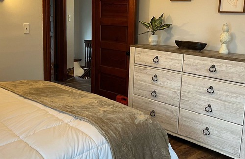 Your whole group will enjoy easy access to everything from this centrally located space. This century old fully renovated classic is beautiful and spacious. Relax on the front porch, barbecue on the side deck or enjoy the beautiful backyard fire pit with wine garden lights. Centrally located in Jackson close to everything. Watch a movie on the smart TV and enjoy the fully equipped kitchen and full-size dining room. This house has an all new fridge, stove, oven, dishwasher, washer, dryer, a one year old water heater, and more. Almost all of the furnishings in the house are brand new. All beds are memory foam mattresses for ultimate comfort with Egyptian cotton Damascus sheets and down alternative comforter’s. The house has a security system for your use for added comfort and security as well as a Grill, fire pit, games for your whole family, foosball table, and dartboard cabinet.