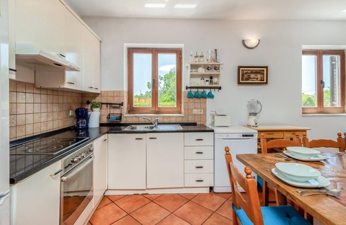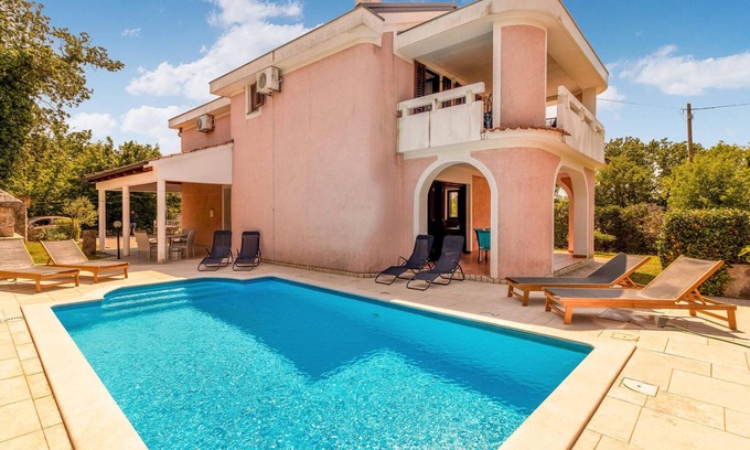 4 bedroom gorgeous home in Dobrinj is located in Gabonjin. 4 bedroom gorgeous home in Dobrinj provides accommodation, featuring Parking, Pool, TV, among other amenities. This House features Parking, Pool, TV, to make your stay a comfortable one.