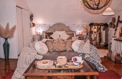 Affirm Living's new home in Philadelphia is a must see! This beautiful garden oasis is located in the quiet and friendly neighborhood of Germantown. You and your loved ones will have full privacy as you enjoy a quiet, peaceful, and restful stay. The home comes equipped with everything one would need away from home. The master suite hosts a private full bathroom. The main bathroom is located on the second flood of the home and houses a large bathtub. Enjoy your morning coffee as provided by us on the quiet porch as you oversee our front garden. You'll be greeted by friendly neighbors who take pride in looking over this home while the owner is away on medical training. Feel free to ask them any questions. Our backyard garden is a serene paradise! The rose garden hugs a private dining area with a bathtub that can be used all year-round. Our fireplace will for sure keep you warm. The house sleeps 9 guests comfortably. If you like sharing, then feel free to invite as many as 15 guests.