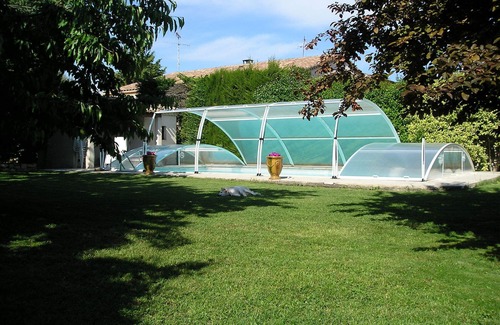 Pretty village house on 1100m2. Lawn, covered and secure swimming pool.