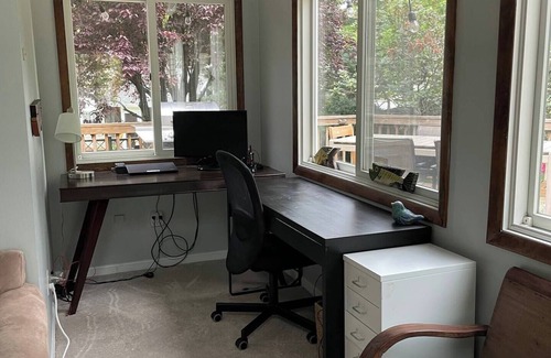 Located in Rockville, this lovely house boasts 4 bedrooms (1 king, 2 full, and 1 queen bed). There is also a private basement with large sofa for extra sleep space. A lovely sunroom serves as a second living room, exercise space and quiet office space overlooking garden. Kitchen is fully equip. 2.4 bathrooms. The home is across the path from the entrance to Rockcreek park for biking, walking, running along the creek. Walking distance to grocery, shops and restaurants. Experience what Rockville has to offer with a stay at our welcoming house.