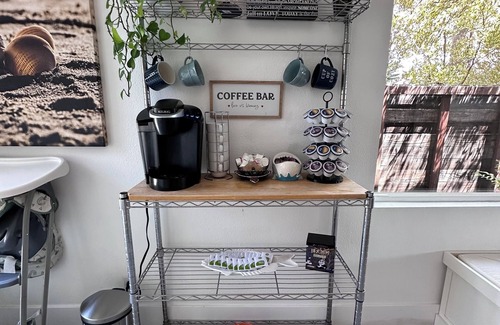 This newly renovated, single story rambler has 2 large living room spaces, a large open concept kitchen, with an island bar and coffee bar. There are 4 bedrooms. A king bedroom, queen bedroom with a crib, another queen bedroom and a bedroom with a lofted full bed and a twin trundle. There is a full air mattress, as well as a couch bed in the front living room that turns into a full. The primary bedroom has its own sliding door to the backyard, as well as its own private bathroom and separate changing room space. The large backyard is newly turfed, surrounded by fruit trees and includes a bbq, 2 hammock chairs and an outdoor dining table and chairs.