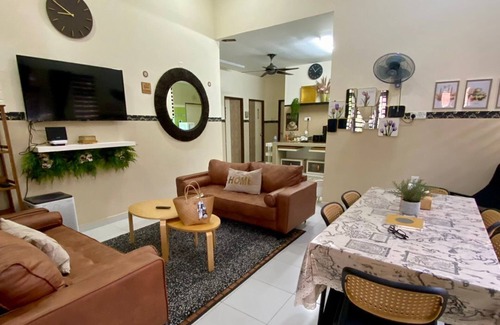 Enjoy a peaceful stay at this 4-bedroom house in Kuantan. The lovely property features 3 queen beds, 1 twin bed, and 1 child bed, perfect for families or groups of friends. With amenities like an iron, AC, washing machine, and WiFi, guests will have everything they need for a comfortable stay. The 2 bathrooms are equipped with a bidet and shower for added convenience. Experience the magic of Kuantan at our house.