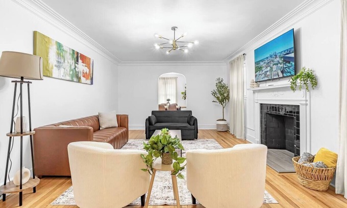 Welcome to our beautifully 4-bedroom, 2.5-bathroom Enjoy the modern and stylish design in every room. Relax in the spacious living room with a 50-inch Smart TV and new comfortable couches, as well as two intimate lounge chairs. Cook up a feast in the large, bright kitchen that is fully equipped with, stainless steel GE appliances, and a modern range stove. Gather around the big dining table to bond with family over delicious meals. Convenient laundry facilities are available in a dedicated room. Book now to experience the ultimate comfort in your home away from home.
