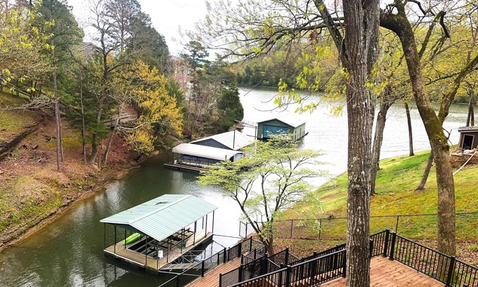 Relax on the covered back porch or open deck overlooking the lake. Swim, kayak, fish from the private dock. You may pick up and drop off passengers at the dock but you can not tie up and leave the boat. The homeowner keeps his boat at the dock, but you will have plenty room. Perfect for families and friends to make memories! Located minutes from local shopping/restaurants, etc.