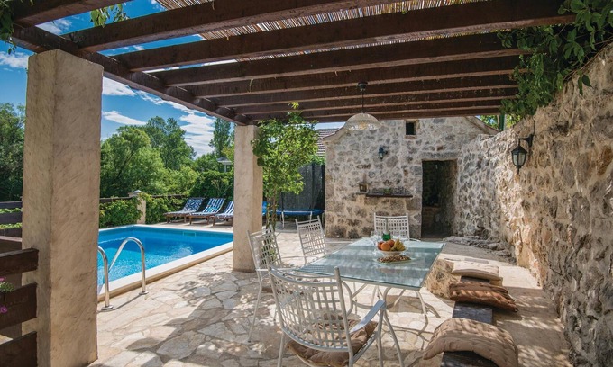 4 bedroom lovely home in Zmijavci is located in Zmijavci. 4 bedroom lovely home in Zmijavci provides accommodation, featuring TV, Private Pool, Fireplace/Heating, among other amenities. This House features TV, Private Pool, Fireplace/Heating, to make your stay a comfortable one.
