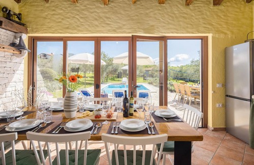 4 bedroom nice home in Buje is located in Kastel. 4 bedroom nice home in Buje provides accommodation, featuring TV, Private Pool, Fireplace/Heating, among other amenities. This House features TV, Private Pool, Fireplace/Heating, to make your stay a comfortable one.