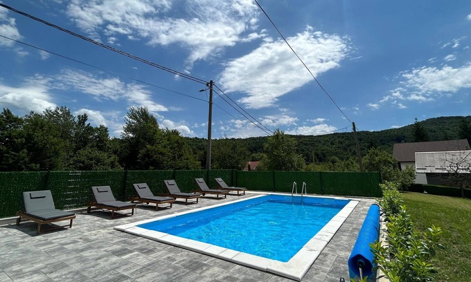 During the day, explore the nearby Plitvice Lakes National Park, one of Croatia's most beautiful natural wonders with its impressive waterfalls and turquoise-blue lakes. Afterwards, return to your holiday home and relax with a glass of wine on the terrace or on the comfortable sun loungers by the pool.