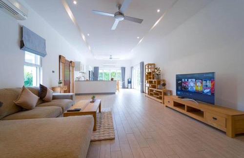 Featuring a garden, 4 Bedroom Private Pool Villa - MR51 features accommodations in Hua Hin. This property offers access to a balcony, free private parking, and free Wifi. The villa provides an outdoor swimming pool and private check-in and check-out. Providing a terrace and garden views, the spacious villa includes 4 bedrooms, a living room, flat-screen TV, an equipped kitchen, and 3 bathrooms with a shower. The property has an outdoor dining area. True Arena Hua Hin is 3.8 miles from the villa, while Hua Hin Bus Station is 4.9 miles away. Hua Hin Airport is 11 miles from the property.