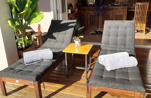 Your own pool surrounded by lush tropical gardens, sun beds and dining area. Inside a fully-equipped kitchen and dining tables, spacious living room opens onto the pool deck