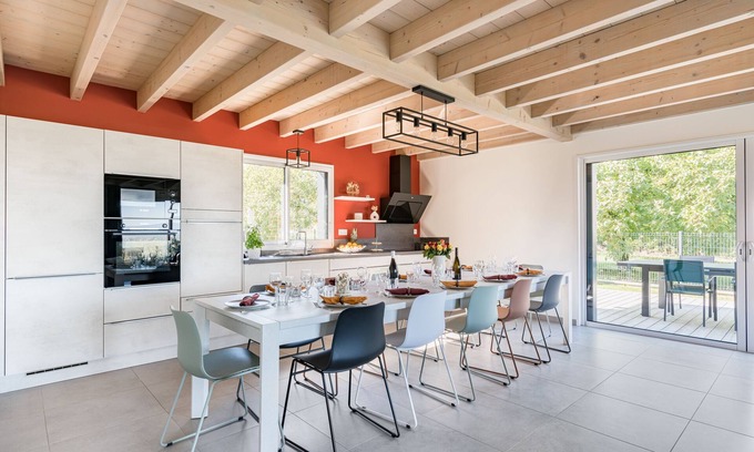 Nestled in Jongieux, this 4-bedroom, 4-bathroom vacation home brings it all within your reach. Fans of nature and the outdoors will love being 14 minutes by car from Lake Bourget and 25 minutes from Plage du Bourget-du-Lac. Let your feet make short work of the 6-minute walk to Domaine Chevallier Bernard or easily tackle the 22-minute drive to Chamnord Shopping Center.