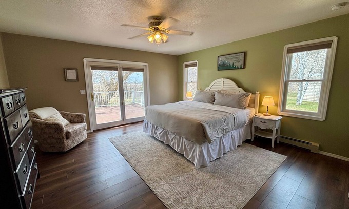 Set at the end of a quiet road, this vacation home feels out of the way yet minutes from the action.With free private parking the property sits on over two acres of mature outdoor space, surrounded by agriculture fields, complete with plenty of seating options to enjoy the serene surroundings. Whether you’re spending time on thewrap-around deckor grilling on the spacious back patio, you'll have plenty of room to relax and unwind.
