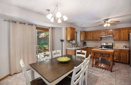 Discover comfort and space in this 4bedroom, 2.5bath beautifully designed home in Omaha! Perfect for families or groups, this stylish retreat features a open concept living room, 2 FULL dining tables and dining areas, a fully equipped kitchen, along with 4 cozy bedrooms two equipped with KING bed's and two queens for a restful stay. Located in a quiet neighborhood with easy access to shopping, dining, and major attractions. Enjoy the perfect blend of relaxation and convenience during your visit!