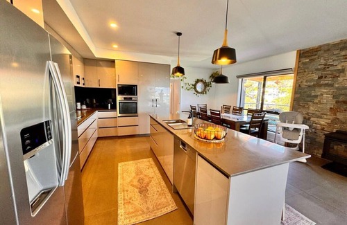 This two-storey residence boasts 4 well-appointed bedrooms, each designed for relaxation, including a master suite with a queen bed, TV, and a deluxe ensuite. The open-plan living area features a cozy potbelly stove, large dining space, and a state-of-the-art kitchen. For fitness enthusiasts, the lower level includes a gym area with a weights station, treadmill, and rowing machine. Additional luxuries include a second living area, BBQ facilities, and an outdoor entertainment space, ensuring every moment of your stay is unforgettable.