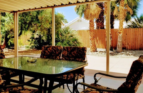Why stay in a hotel, when you can rent an upscale 4 bedroom home, with a large furnished kitchen, washer and dryer, 4 bedrooms, 2 baths? Park your vehicles in a garage, beautiful private back yard with large covered patio. Enjoy the patio with the glass patio table with 6 padded chairs, BBQ, and a patio sectional seating to enjoy the gorgeous palm and pine trees of a very nice landscaped yard.