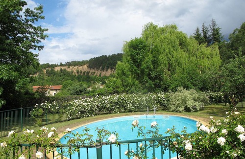 The garden is one of the delights of Les Lucioles. Firstly it is about an acre in size and is very secure, (when the gates to the house drive have been closed). The swimming pool is oval and surrounded by a grassed area inside a security rail fence. This fence is partially covered with climbing roses. If you are in residence at the appropriate time the orchard is pretty fruitful in plums and apples and a large cherry. You are welcome to eat the fruit. There are also specimen trees planted in other parts of the garden which provide shade even on the hottest of days. There is ample room for games of kickabout football, for making dens, and for games of hide and seek. There is a newly built tree house for children.
