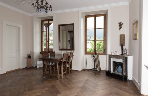 Anatoly House is a nearly 200 year old historical monument. We offer a large, private flat in our home. It has a private entrance and is on our top 3rd floor. The views from 2 balconies are gorgeous with romantic, panoramic views of Geneva Lake and the Alps Newly renovated private flat has 4 bedrooms with a total of 6 beds, 2 comfy pull out sofa beds, fireplace in kitchen, 1 large bathroom with shower and tub and one toiette room. The Flat: The newly renovated 2nd floor flat has 4 bedrooms . The total size of the flat 138 meters with a large hallway and two huge balconies facing East and South at Lake Geneva.