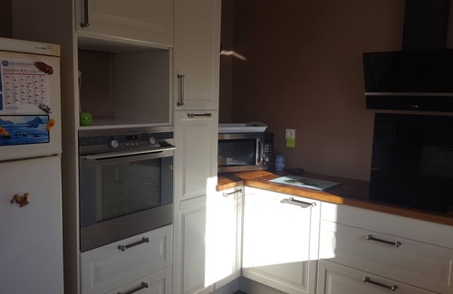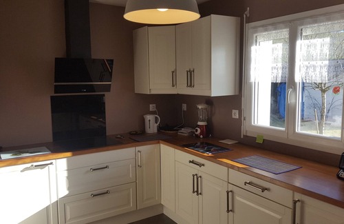 Welcome to my single storey house located 450m above sea level 10 km from Besançon. It is located in the countryside in a recent and quiet housing estate with a view of the fields and has an equipped kitchen (crockery, oven, microwave, refrigerator)