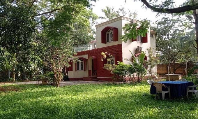 Beautiful 4-Bedroom Villa in Bengaluru surrounded by acres of Greenery with all facilities and amenities. Suitable for family group for weekend get-away, people wanting to stay close to nature or even those wanting to stay close to Bangalore Kempegowda International Airport or visiting Bengaluru. Pets are allowed outside villa in doghouse within property at additional charges.