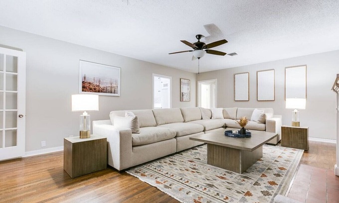 Our spacious home offers a relaxing and convenient stay for families, groups, and business travelers alike. Enjoy the comfort and privacy of four bedrooms and three bathrooms, along with a beautifully designed living space and a fully equipped kitchen. Step outside to your own private turf backyard. With nearby shopping, dining, and popular attractions, our place is the ultimate home base for your next trip. Book now and experience the best of convenience and comfort in one charming location.