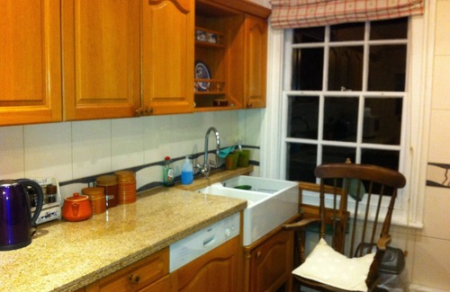 The delightful double aspect kitchen/diner has a feature fireplace, 2 large sash windows. Equipped with integral double range cooker, granite worktops, fridge freezer, washing machine, dishwasher